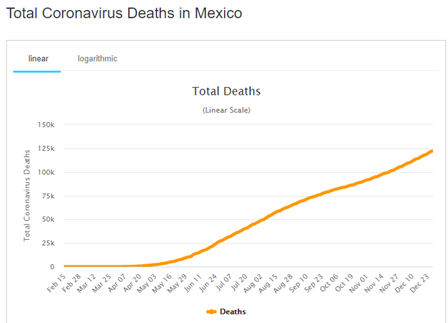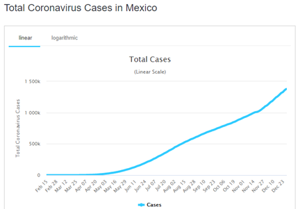 Итак, с 1 338 426 инфекциями и 119 495 смертельными исходами Мексика является четвертой страной в мире по абсолютному количеству смертей, а ее столица, Мехико, находится на грани перенасыщения больниц.[[3]](# _ftn3)